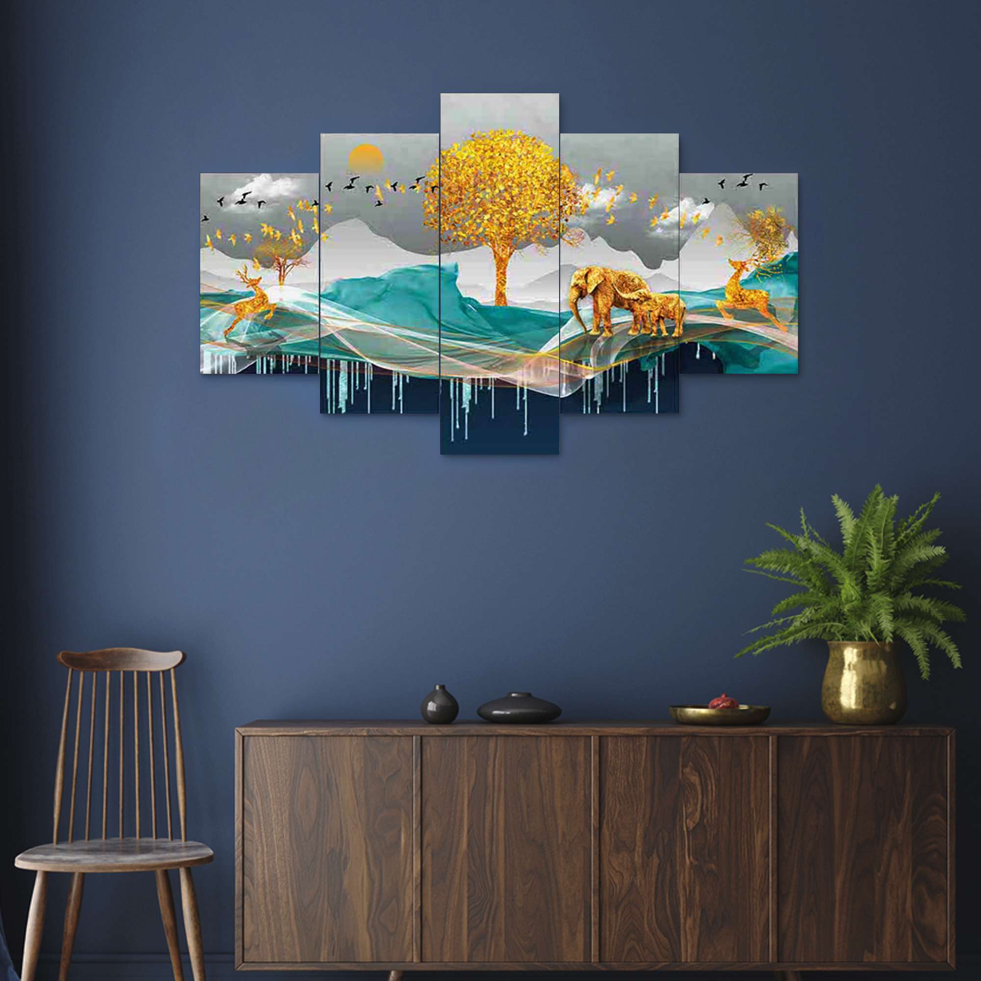 Elevate your home decor with the exquisite Set of Five 3D Framed Paintings. These captivating artworks are designed to bring a touch of elegance and sophistication to your living space. Ideal for home, living room, and bedroom decoration, this collection adds a vibrant and artistic flair to any room.Presents This Set Of 5 Amazing Paintings For Your Wall . The Painting Will Completely Change The Atmosphere Of The Room Whire It is Placed . The Paintimg Is Made On Heavy Wooden Board And Has A Digital UV Coating On It Which MAKES It Very Easy To Clean . Pricing Of The Product Is Made Very Reasonable From Our Brand As Per The Quality We Are Providing To Our Customers